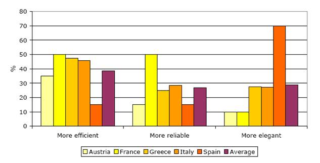 Fig. 9. Costumer’s willingness to pay more for a product that is: More efficient? More reliable? More Elegant?